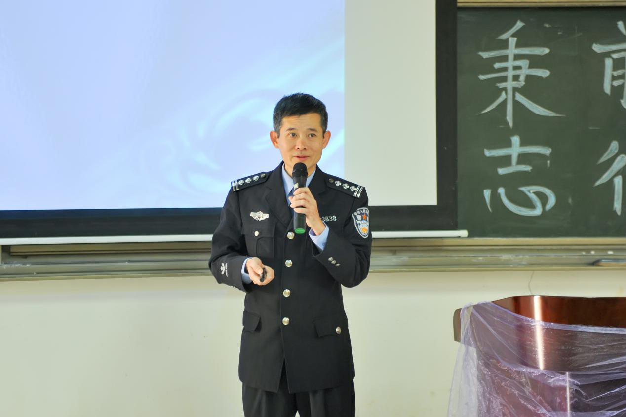 来自广州市公安局黄埔区分局指挥中心一级警长罗穗强先生直接将他工作内容的一部分搬上大学的课堂,给学生们展示自己安全教育工作的一面。罗警长通过案例情景引出主题——“走在安全大道上”,并结合自身丰富的工作经验,从“交通安全是什么”、“交通事故猛于虎”、“如何认识交通安全”、“如何做到交通安全”四个方面展开讲述,他告诉同学们要从身边开始认识交通安全,强调步行、骑自行车、驾驶机动车、乘车等常见出行方式都需要严格遵守交通法规。最后罗先生赠言给同学们:“交通安全联万家,守法幸福你我他”。