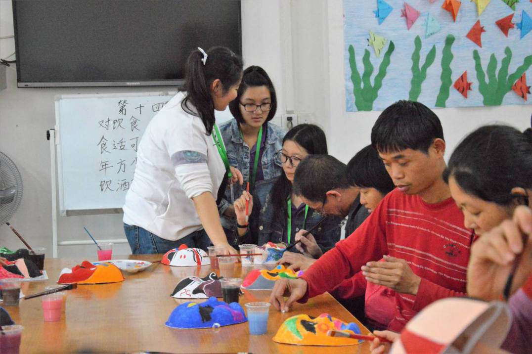 京剧是中国的国粹,为了让残障人士尽快体会到其中精髓,微丁香志愿队实践拓展组的陈静红同学为大家讲解有关于京剧脸谱的知识,与此同时,残障人士也在欣赏着主讲人绘制的脸谱,他们对脸谱也是一致好评。