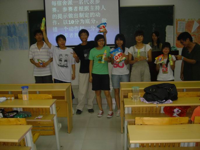 而在我们穿插的小游戏“默契大考验”中,由于我们班各宿舍的室友们都相处得比较融合,且题目比较有趣,同学们都踊跃参与这游戏,把活动推向了另一高潮。当游戏结束后,主持人便宣布了我班5月份宿舍卫生突击检查评比结果,并颁发奖品。活动的最后,我们进行了抽奖活动,让那些积极参与此活动的同学们满载而归,永不落空。