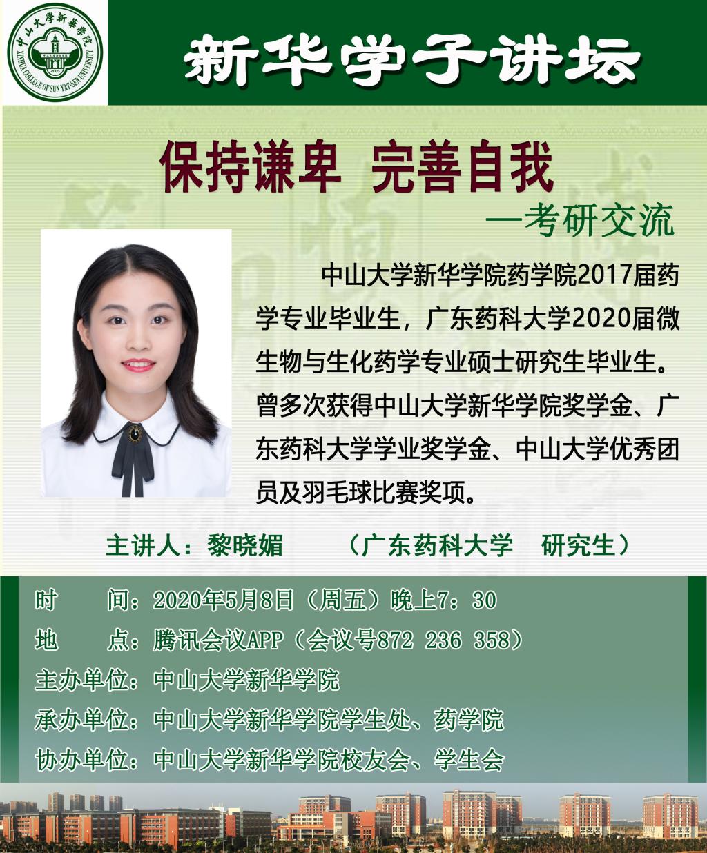 【学子讲坛预告】黎晓媚:保持谦卑 完善自我——考研交流