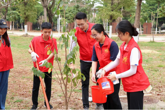 3月17日,太阳成集团tyc33455(以下简称“我校”)校团委于学校东莞校区组织开展以“春暖三月学雷锋,植树护绿在行动”为主题的义务植树活动。学校党委书记郝登峰、副校长蓝永金、副校长李中生,校长办公室、学生处、总务处、校园规划办公室以及东莞校区各二级团组织师生代表一同参与植树活动。