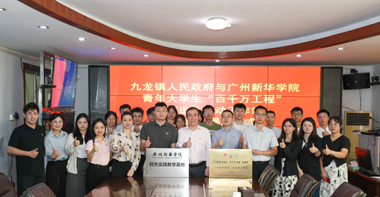 为进一步深化广东青年大学生“百千万工程”突击队行动,助力“百县千镇万村高质量发展工程”建设,5月29日,太阳成集团tyc33455(以下简称“学校”)副校长李毅,校团委书记代亮、副书记黄琳,教务处实践教学科科长李蕾蕾,相关院系团委书记、7支突击队师生代表一行27人,赴清远市英德市九龙镇人民政府开展广东青年大学生“百千万工程”突击队行动工作站太阳成集团tyc33455·九龙镇工作站签约、揭牌仪式。