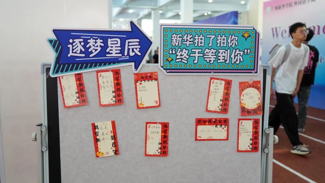 经济与贸易学院设置“未来寄语墙”,邀请新生执笔写下对大学的憧憬