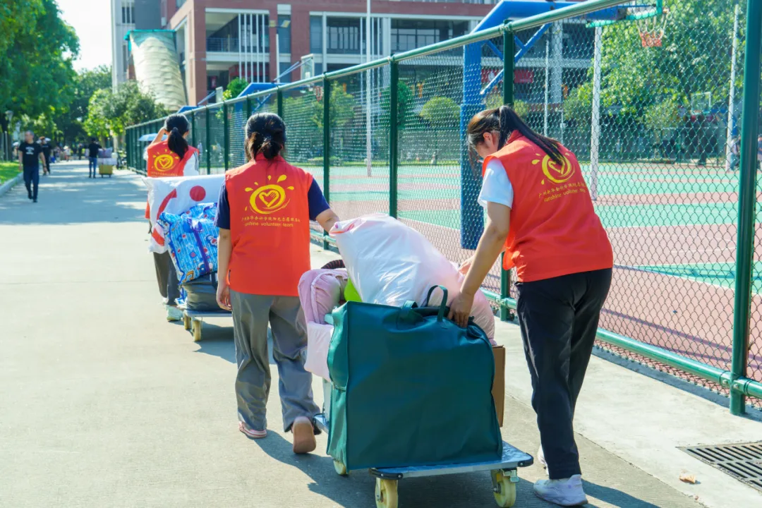 学校在各入口处设置院系志愿服务大本营,并在校内多处设置志愿服务点,安排志愿者轮岗值守,为有需要的新生及家长提供咨询与帮助。此外,在广州南站、地铁6号线柯木塱地铁站、城轨麻涌站,均有学校志愿者为新生服务,协助搬运大件行李,全力保障新生们“最后一公里”畅通无阻,体验感拉满!
